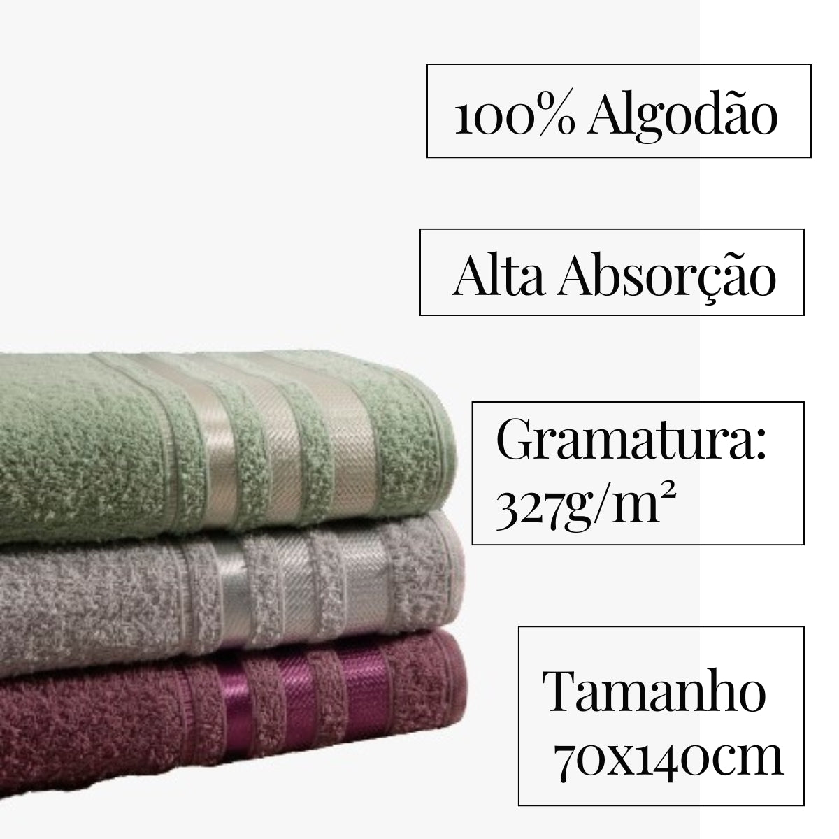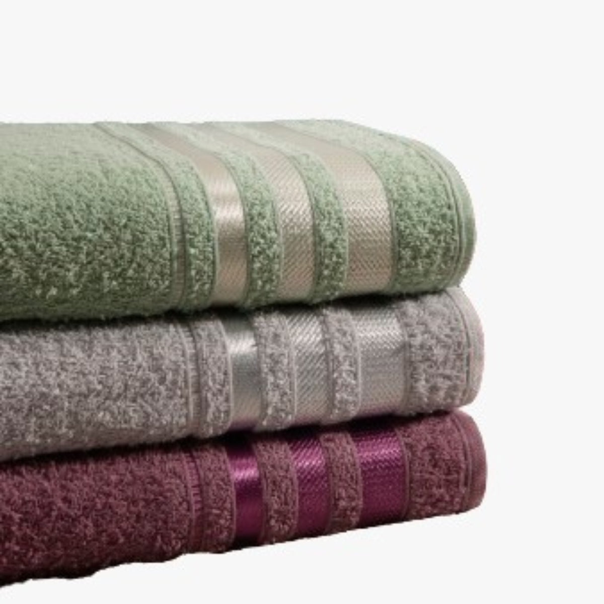 Jogo C/ 3 Toalhas De Banho Marselha 70x140cm 100% Algodão - Verde Menta / Açaí / Inox