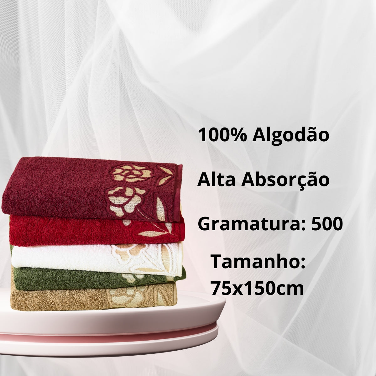 Feitas em 100% algodão, as toalhas são macias e felpudas, proporcionando uma sensação de bem-estar após o banho. A gramatura de 500 g/m² garante que as toalhas sejam absorventes e secas rapidamente.